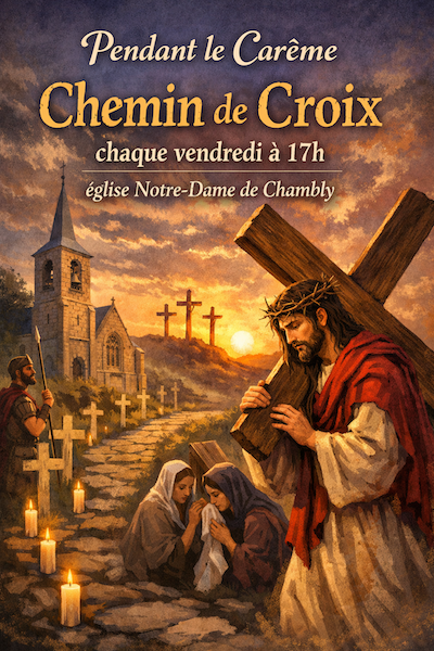 Pendant la Semaine Sainte, le Vendredi Saint (3 avril) : le Chemin de Croix aura lieu à 15h à l’église Notre-Dame de Chambly